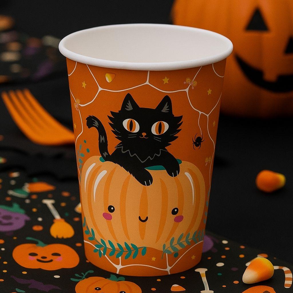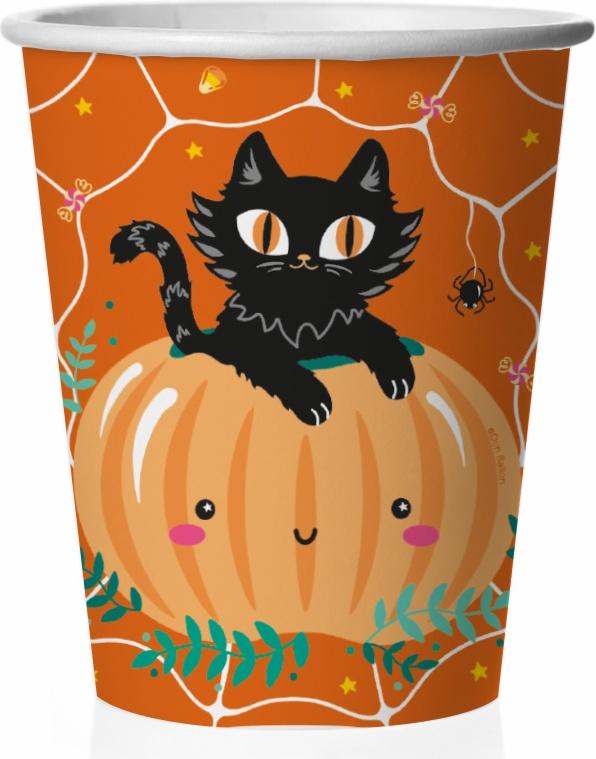 СТАКАНЫ БУМАЖНЫЕ ВЕСЕЛУХА ХЭЛЛОУИН ЧЕРНЫЙ КОТИК С ТЫКВОЙ 260МЛ, 6 ШТ