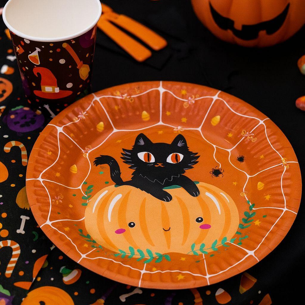 ТАРЕЛКИ КОШКА НА ТЫКВЕ ДОН БАЛЛОН 18 СМ 6 ШТ