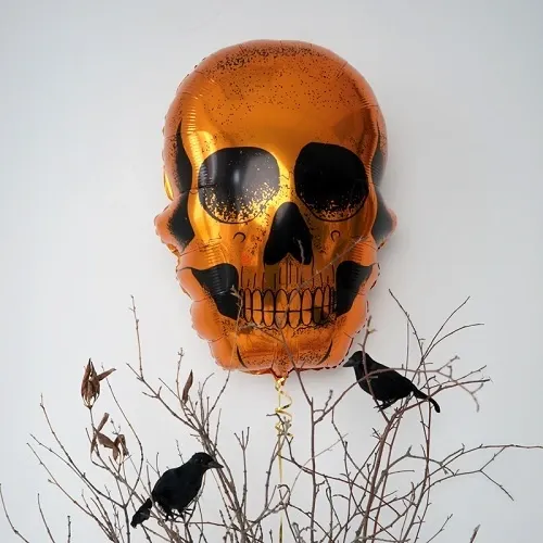 ШАР ФОЛЬГИРОВАННЫЙ ВЕСЕЛУХА ЧЕРЕП ЗОЛОТО 30*76 СМ , 1 ШТ