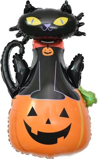 Шар с клапаном (17''/43 см) Мини-фигура, Кошка на тыкве, 1 шт.,