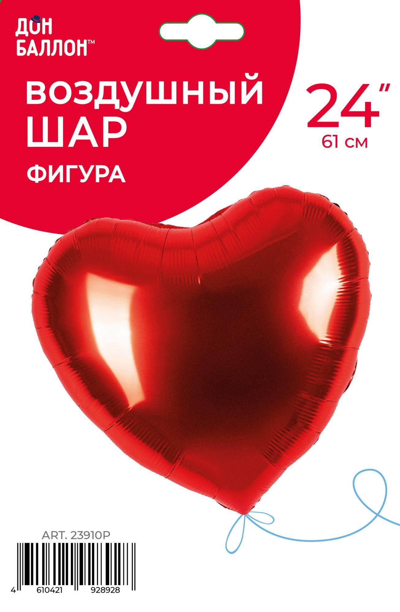 Шар (24''/61 см) Сердце, Красный, Металлик, 1 шт. в уп