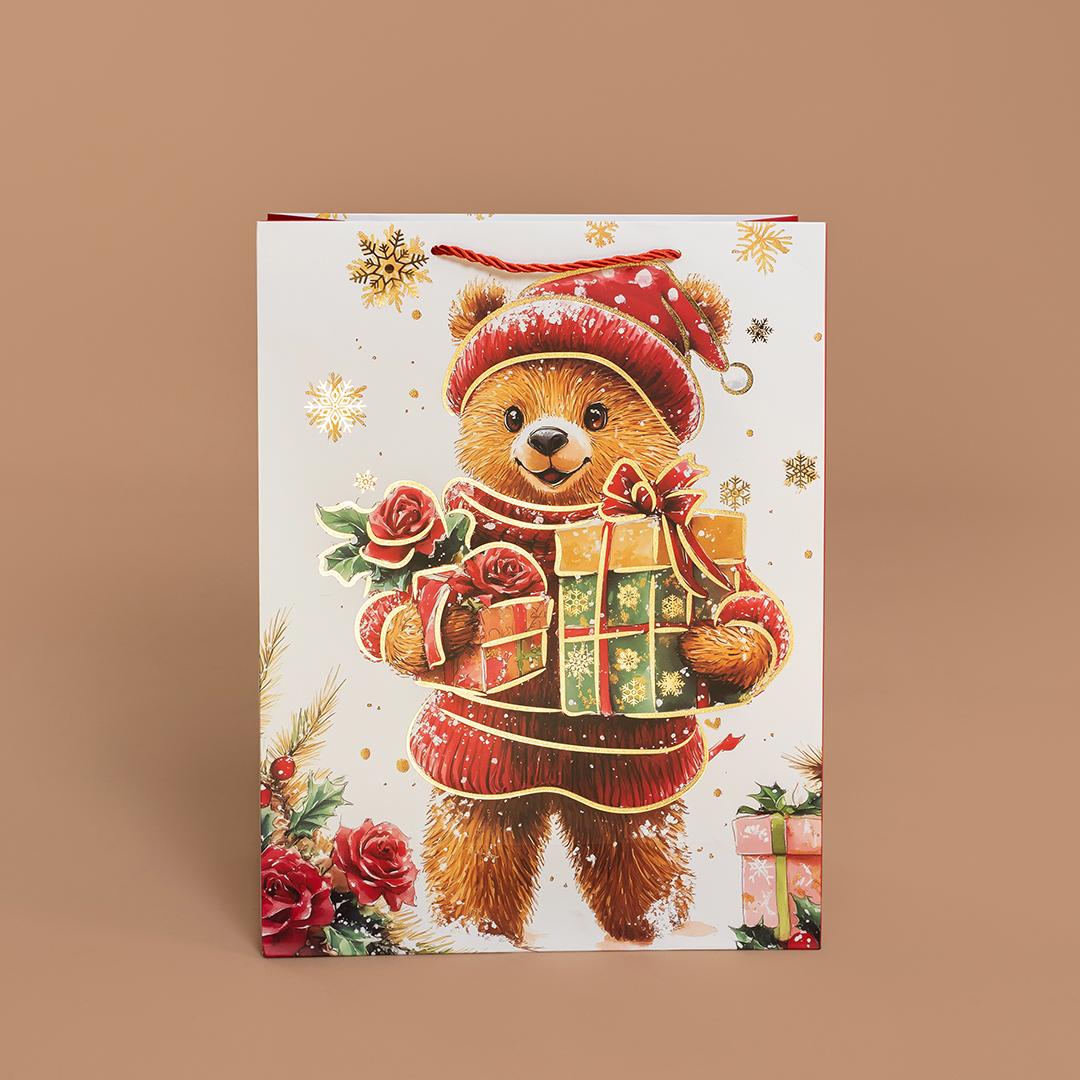 Покупайте Пакет подарочный, Новогодний мишка, Металлик, 40*31*12 см, 1 шт. (артикул ) по цене 850 тг. онлайн в нашем интернет-магазине SurpriseKst.kz