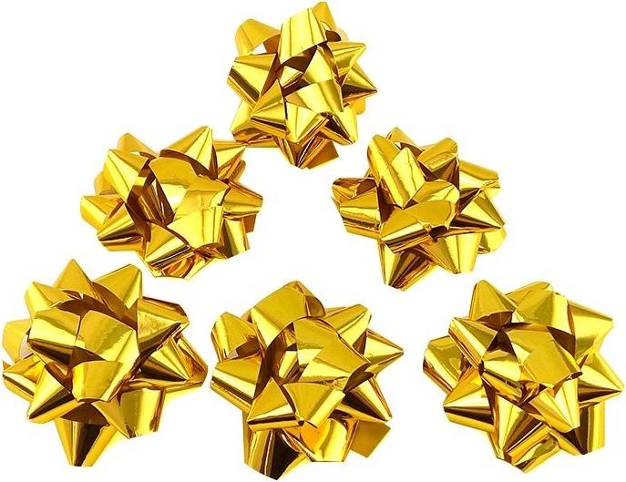 Подарочный бант-звезда Металлик "Классика" золото 6 шт 4 см