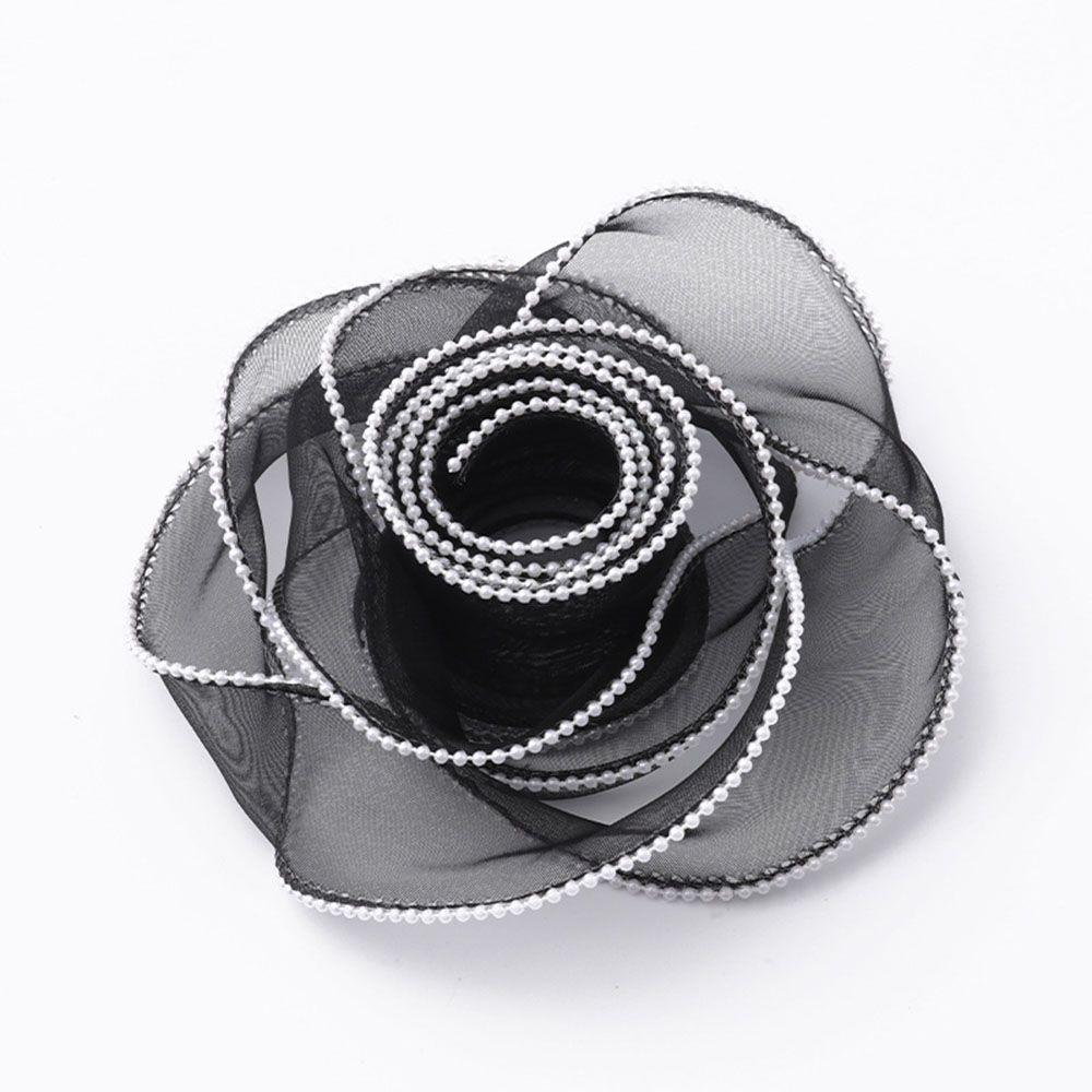 Лента органза с бусинками черная кудрявая 9 метров 4 см