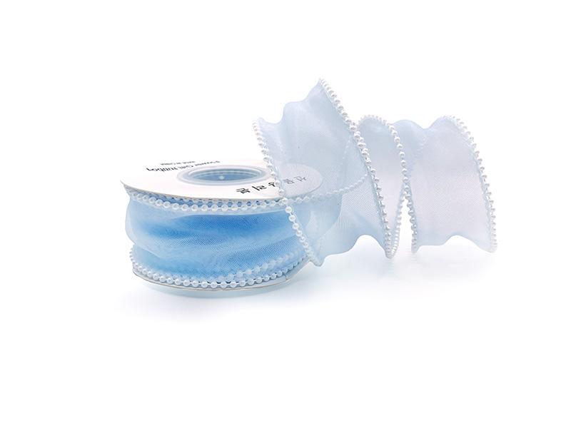 Лента органза с бусинками голубой кудрявая 9 метров 4 с