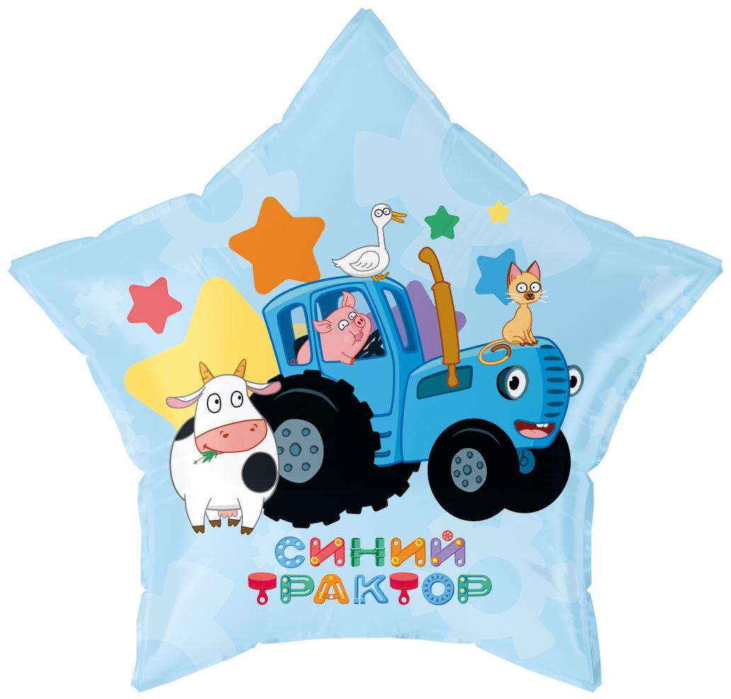 Шар (19''/48 см) Звезда, Синий трактор, С Днем Рождения!, 1 шт. в уп.