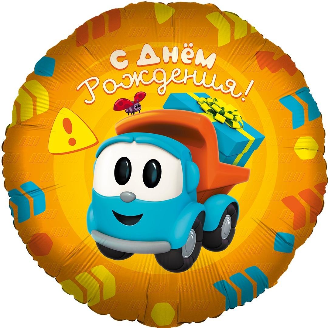 Шар (18''/46 см) Круг, Грузовичок Лёва, С Днем Рождения!, 1 шт. в уп.,