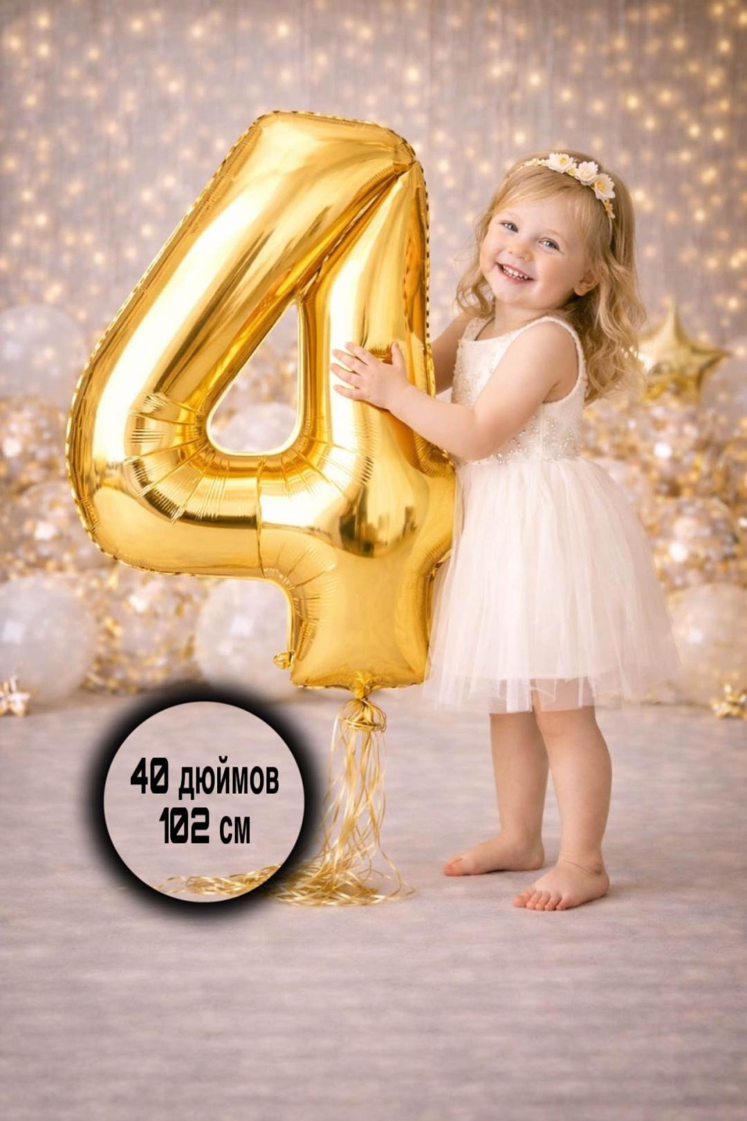 Покупайте Цифра 4 фольгированная золото 100 см-40д (артикул ) по цене 750 тг. онлайн в нашем интернет-магазине SurpriseKst.kz