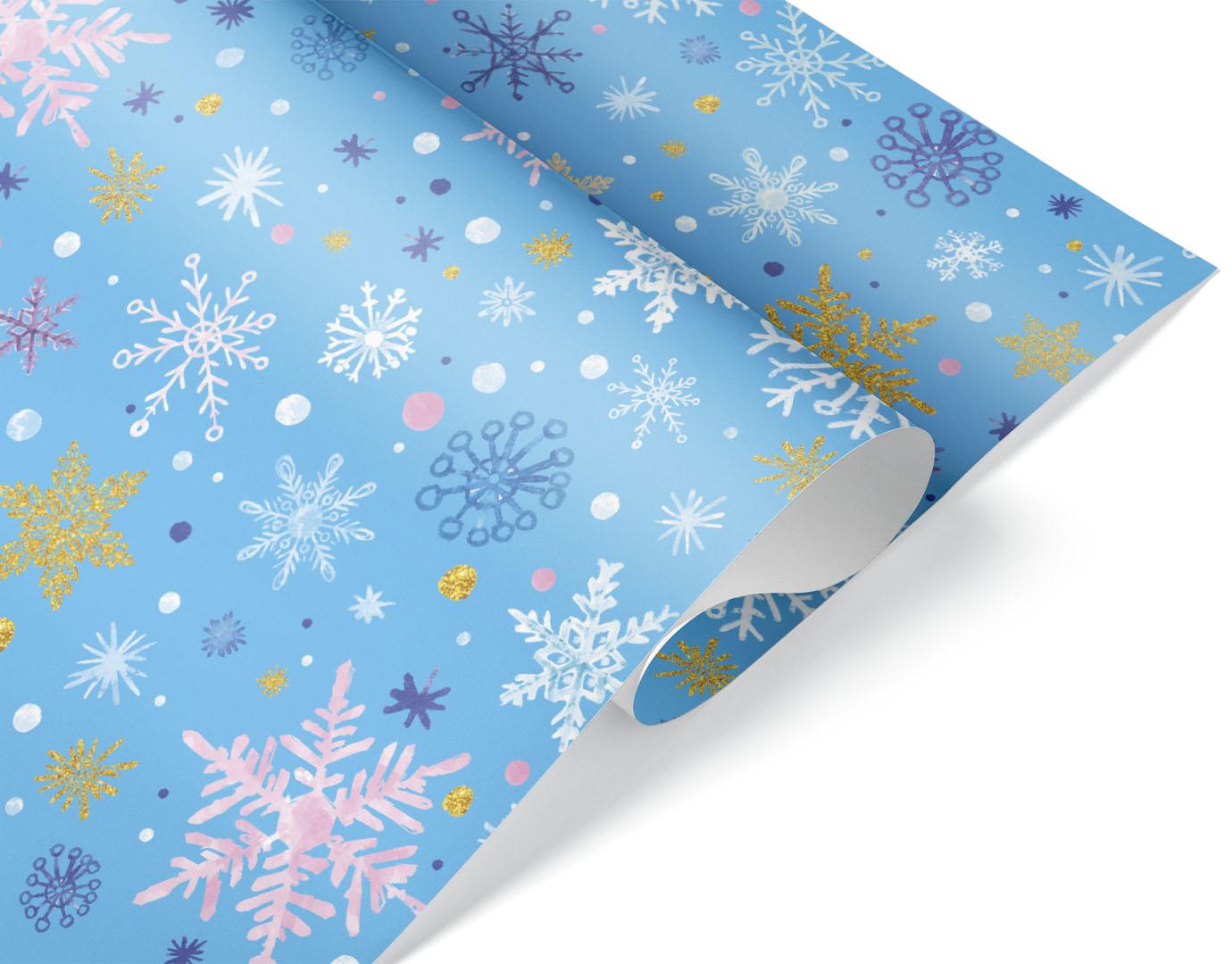 Упаковочная бумага 80гр (0,7*1 м) Волшебные снежинки, Голубой, 1 шт