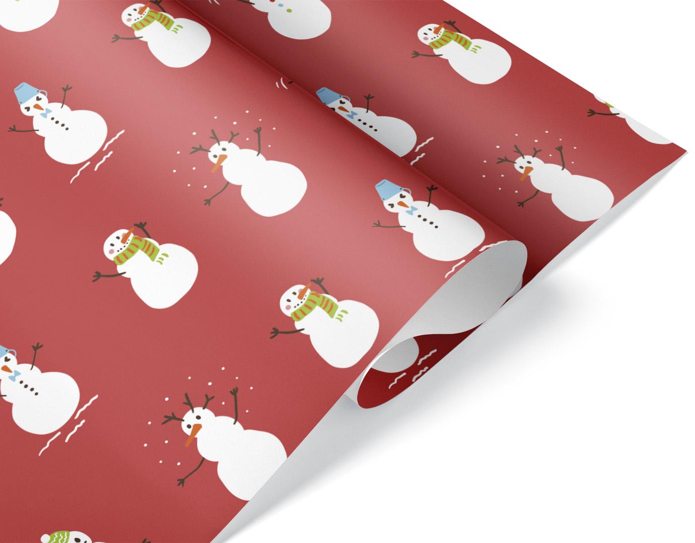 Бумага упаковочная 75*50 красный с снеговиками и крупными снежинками 1 шт