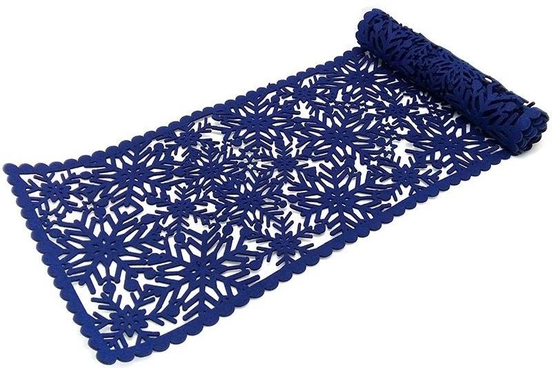 ДОРОЖКА НАСТОЛЬНАЯ ИЗ ФЕТРА "УЗОРЫ" СИНЯЯ / 120СМ*30СМ