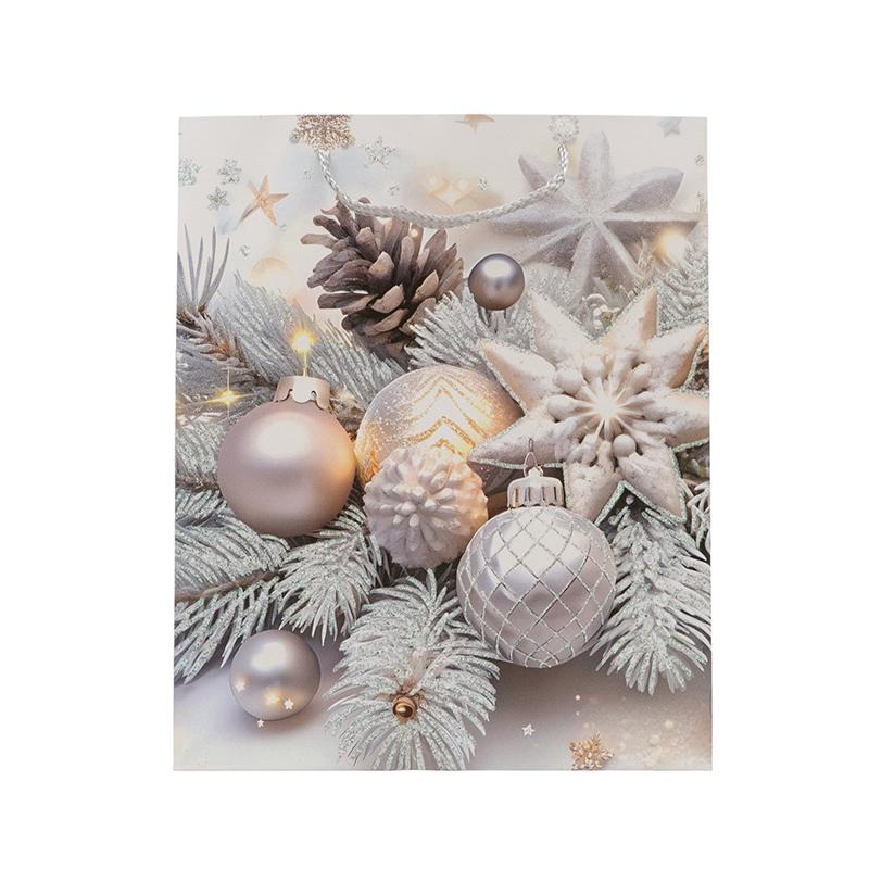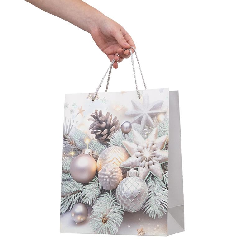 Пакет подарочный "С новым годом! Игрушки. Белый стиль" 26*32*12 см 1 шт