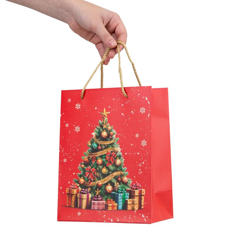 Покупайте Пакет подарочный "С новым годом! Ёлка с блеском, Красный стиль" 18*23*10 см (артикул ) по цене 450 тг. онлайн в нашем интернет-магазине SurpriseKst.kz
