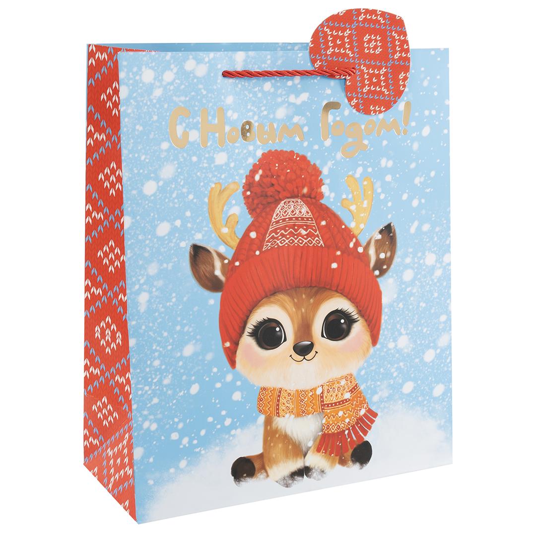 Пакет подарочный, 210гр, С Новым Годом! (олененок), Металлик, 23*18*10 см, 1 шт.