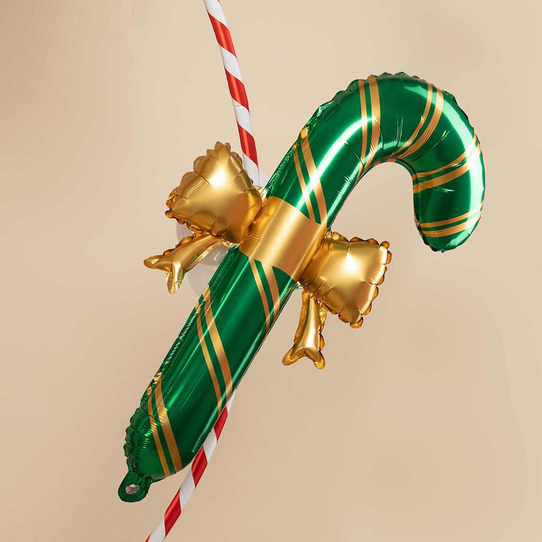 Покупайте Шар (30''/76 см) Фигура, Леденец трость, Золотой бант (надув воздухом), Зеленый, 1 шт. в уп. (артикул ) по цене 650 тг. онлайн в нашем интернет-магазине SurpriseKst.kz