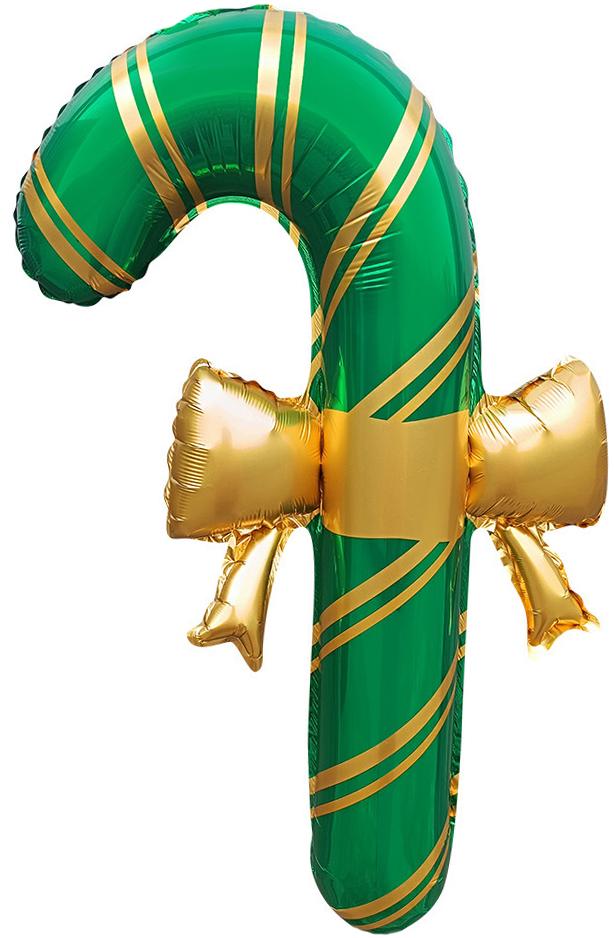 Шар (30''/76 см) Фигура, Леденец трость, Золотой бант (надув воздухом), Зеленый, 1 шт. в уп.