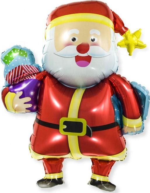 Шар с клапаном (13''/33 см) Мини-фигура, Веселый Дед Мороз с подарками, 1 шт.,