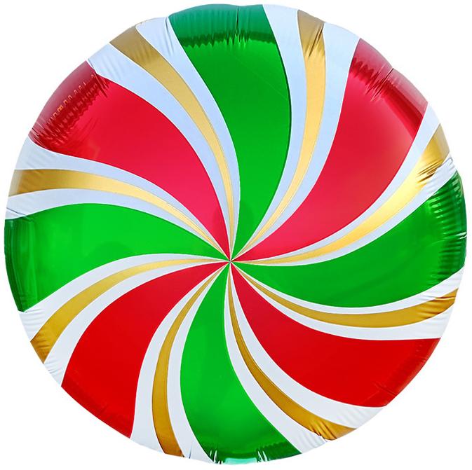 Шар (18''/46 см) Круг, Леденец, Красный/Зеленый, 1 шт. в уп