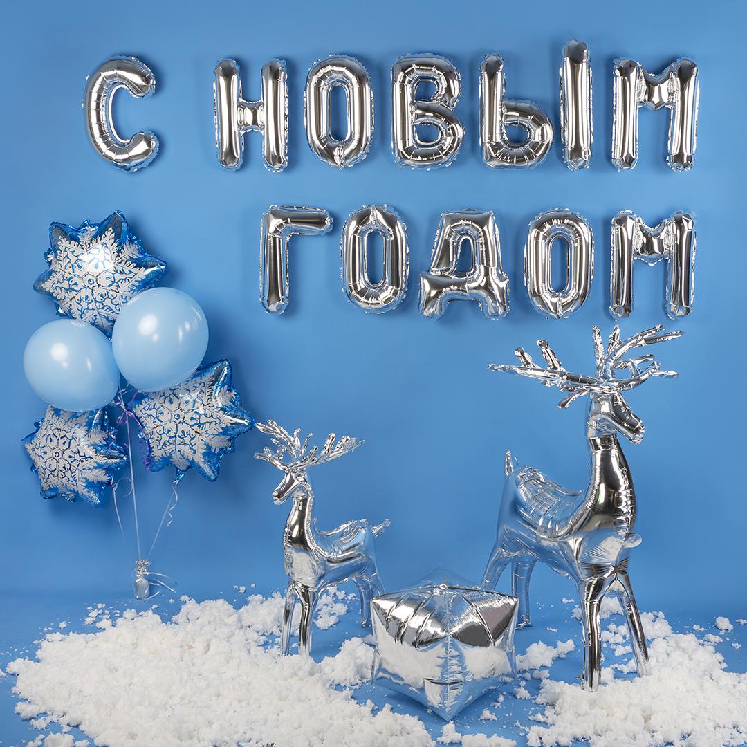 С Новым годом буквы СЕРЕБРО растяжка из шаров.