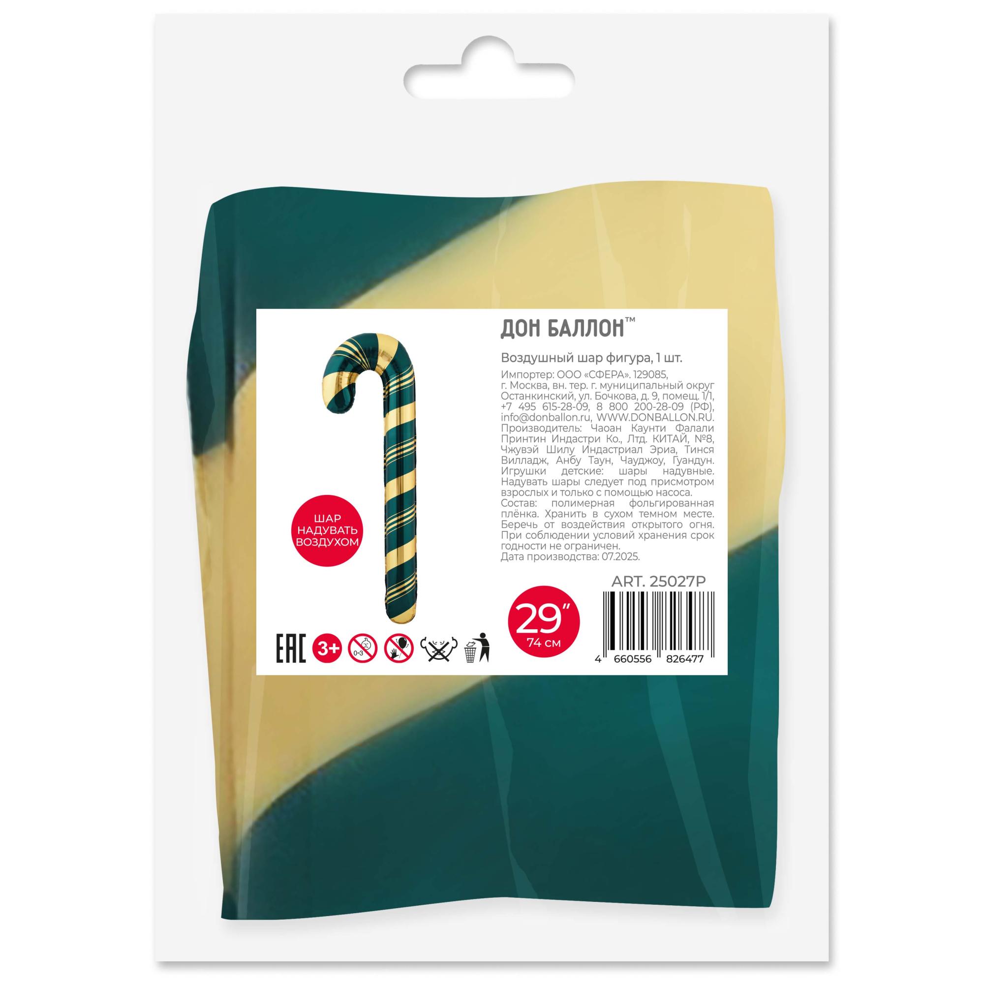 Шар (59''/150 см) Фигура, Леденец трость с бантом, Зеленый/Золото, 1 шт. в уп.