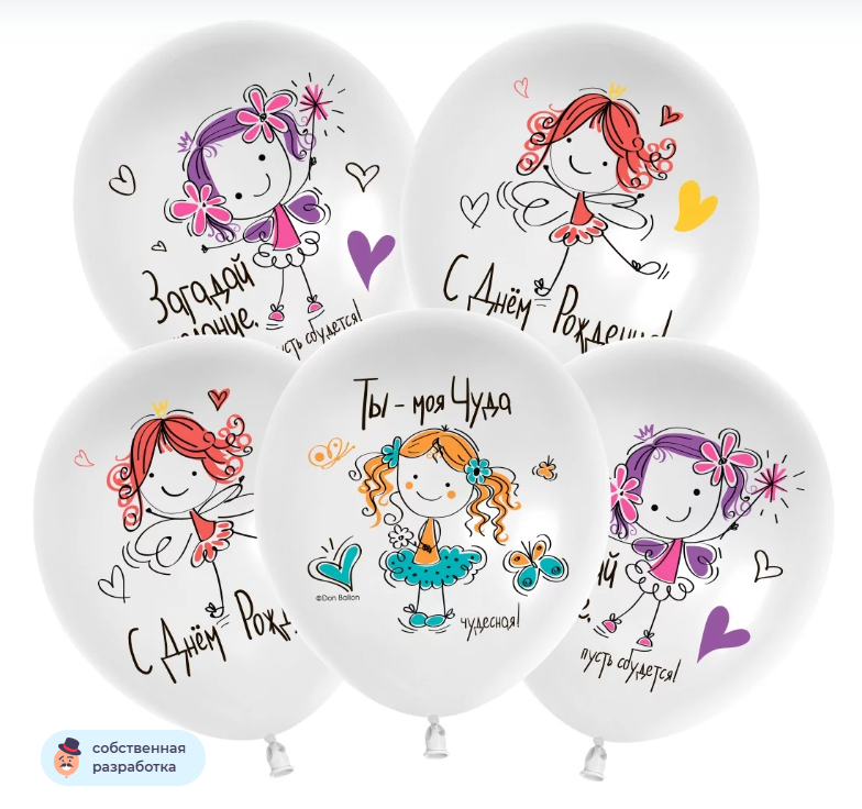 Чудесная девочка СДР, Ассорти Пастель, латексный шар 5 шт