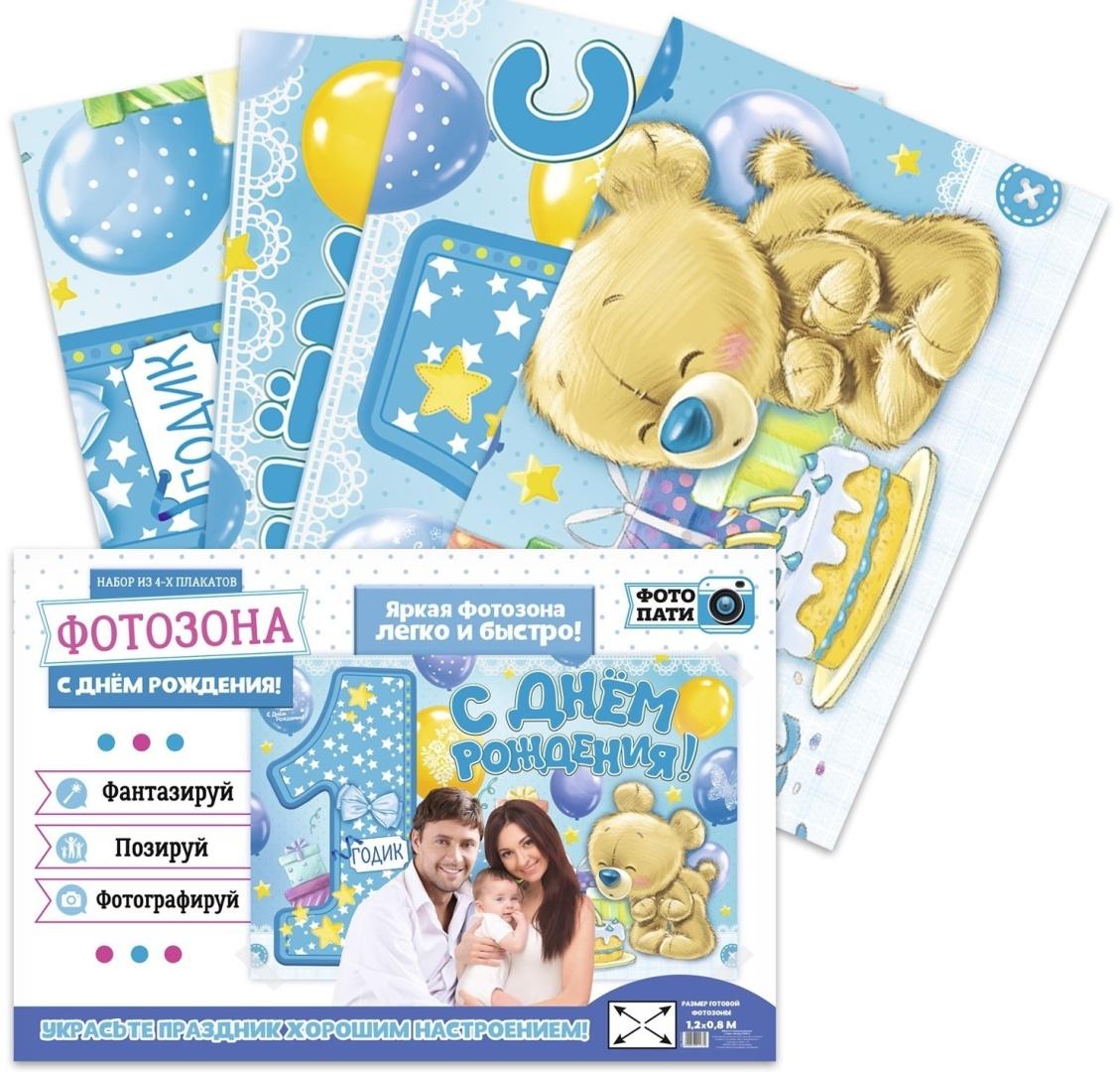 Фотозона на 1 годик Мальчику (Набор из 4-х плакатов),120х80 см ,1шт
