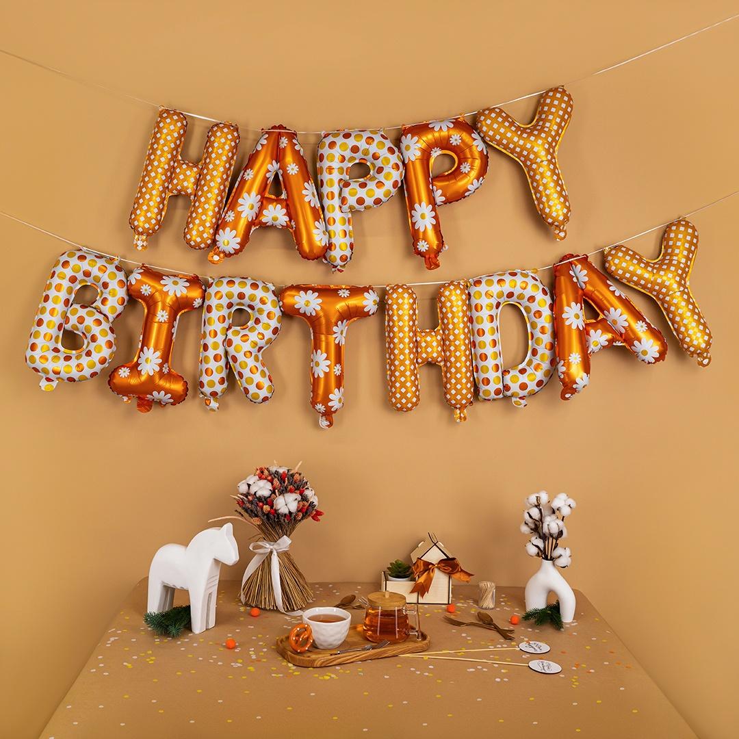 Набор шаров-букв (16''/41 см) Мини-Надпись "Happy Birthday", Ромашки, 1 шт. в уп