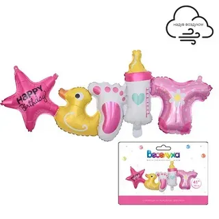 Гирлянда на рождение девочки в упаковке, фольгированный шар,106см,1шт